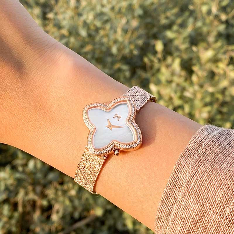 بتصميمها العملي والفخم، تضيف هذه الساعة لمسة جمالية لأي إطلالة. سواء نسّقتها مع أساور لمظهر عصري أو ارتديتها بمفردها كقطعة ملفتة، فإن سحر تصميمها المستوحى من الزهور ولمساتها المصقولة يضمنان لك حضورًا مميزًا بكل أناقة.