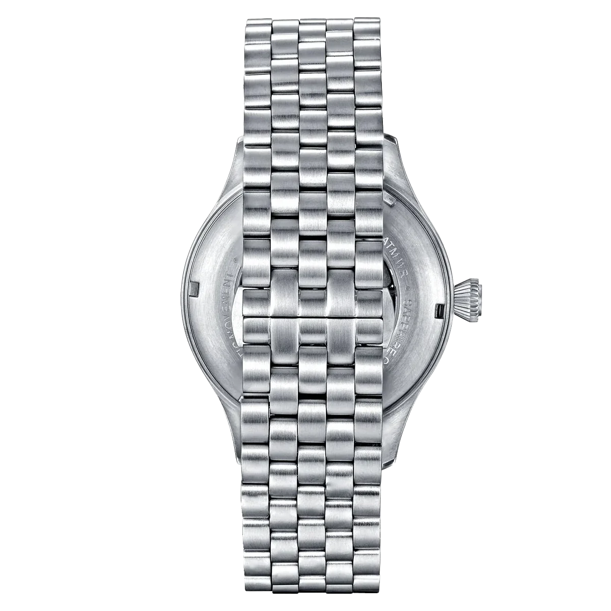 The pilot series is inspired by the historic aviation of the UAE starting in 1932. It is a vintage watch which is a piece of history on your wrist. Featuring large Arabic numbers to read in tough conditions, a large 42mm case to fit over pilot jackets and a large crown to change the time easily while wearing gloves. The hands are inspired by the wings of the airplane The hour markers inspired by the flaps of the airplane The pilot watch is robust and resistant, with a rugged and bold feel.