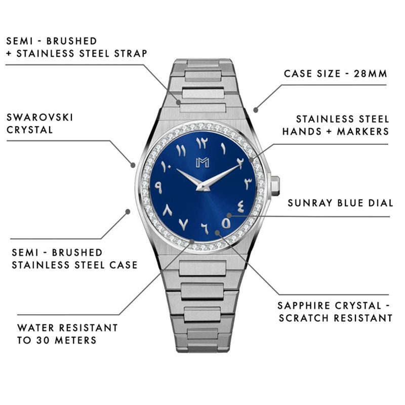 بميناء مرصّع بالكريستالات المتلألئة وتصميم مصقول بعناية، تجسد هذه الساعة مفهوم الفخامة الراقية والبسيطة في آنٍ واحد، لتكون خيارك المثالي للإطلالات اليومية والمناسبات الخاصة.