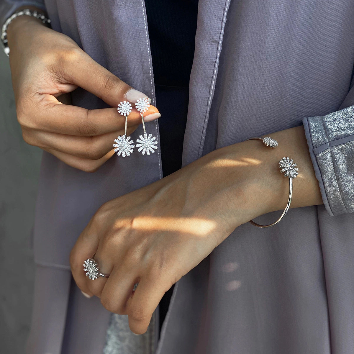 تقدم مجموعة تشارمنق سن فلاور تصميمًا مبهجًا مستوحى من الطبيعة، بتفاصيل تشبه بتلات الورد المشعة وبكريستالات متلألئة. تصميم جريء ومشرق يضفي جمالا على لحظاتك اليومية، ويجعل منها هدية لا تنسى.