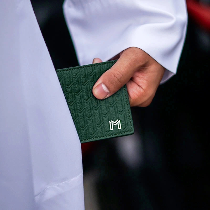 مستوحاة من التراث الإماراتي الغني ومدمجة بلمسات عصرية، تجمع كل محفظة بين التصميم البسيط والتفاصيل الثقافية الراقية، مما يجعلها قطعة فريدة وأنيقة. مصنوعة من أجود أنواع جلد الجمل المعروف بملمسه الفاخر ومقاومته الطبيعية للخدوش، صنع كل باوتش يدويًا بدقة وإهتمام، لتدوم أناقتها لسنوات طويلة.