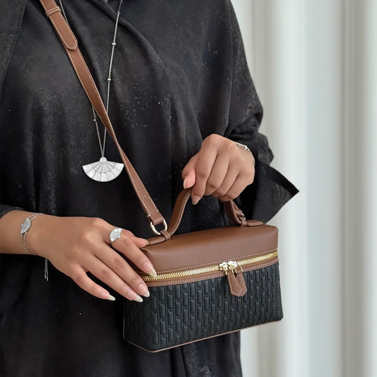 تجسد مجموعة فان تناغم البساطة مع الفخامة؛ طقم مجوهرات يتميز برمز الفان المصوغ من عرق اللؤلؤ الطبيعي والمرصع بكريستالات براقة، ليمنحك أناقة يومية ويضفي لمسة استثنائية للهدايا.