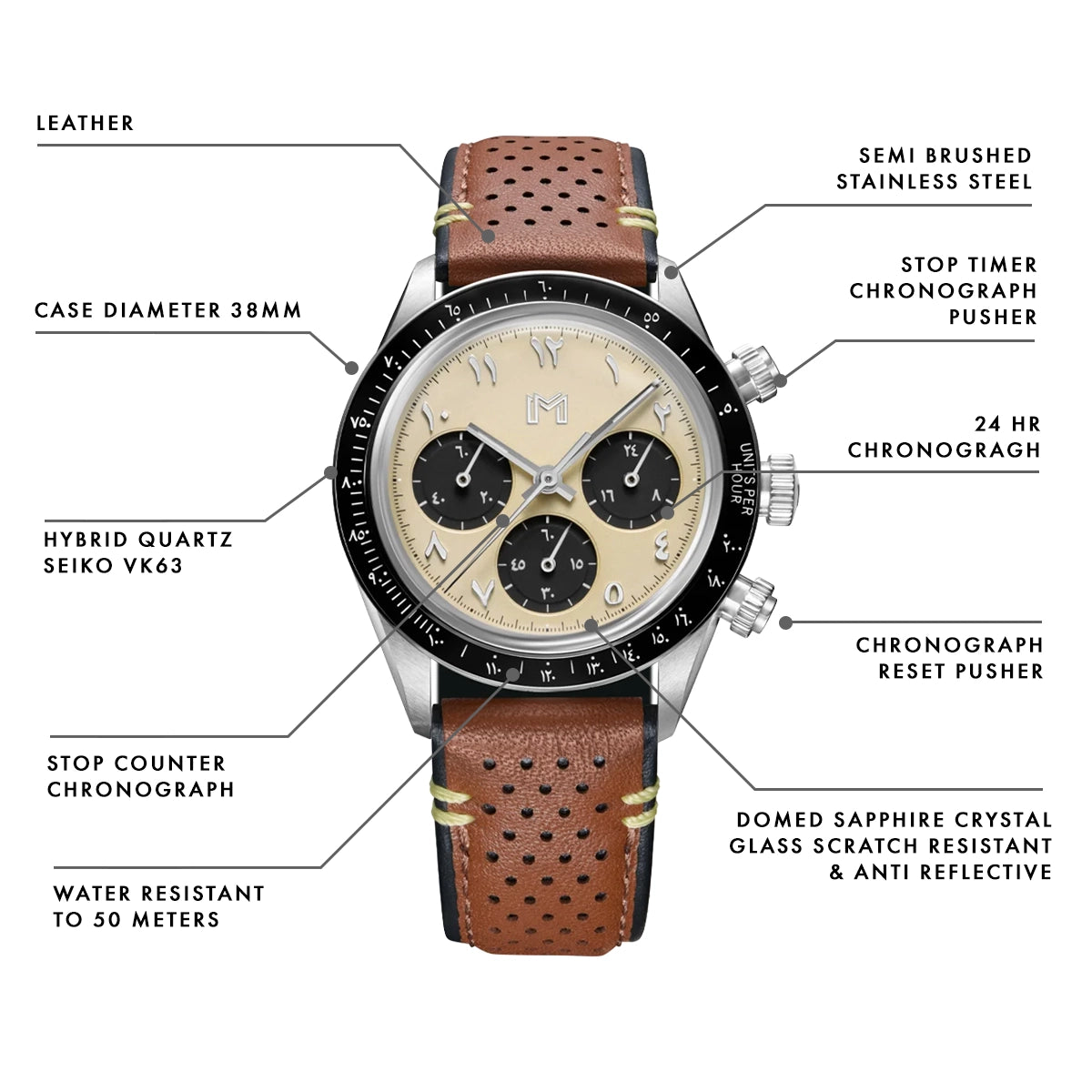 Our watches feature reliable quartz or hybrid chronograph movements for accurate timekeeping.