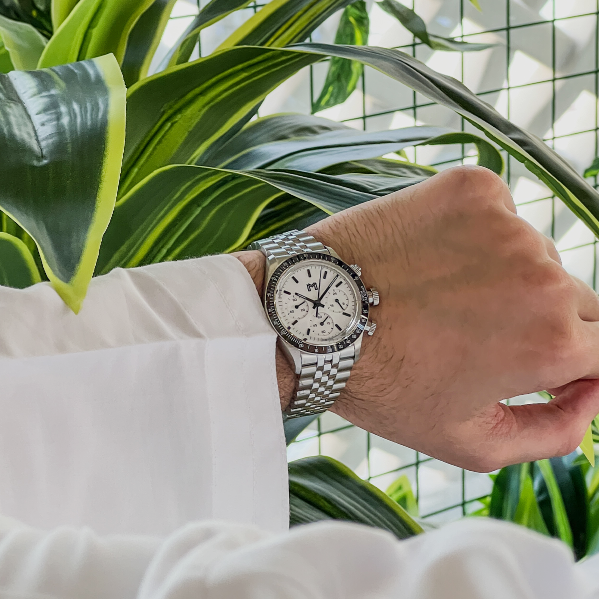Our watches are crafted from premium stainless steel with sapphire crystal glass for scratch resistance and durability.