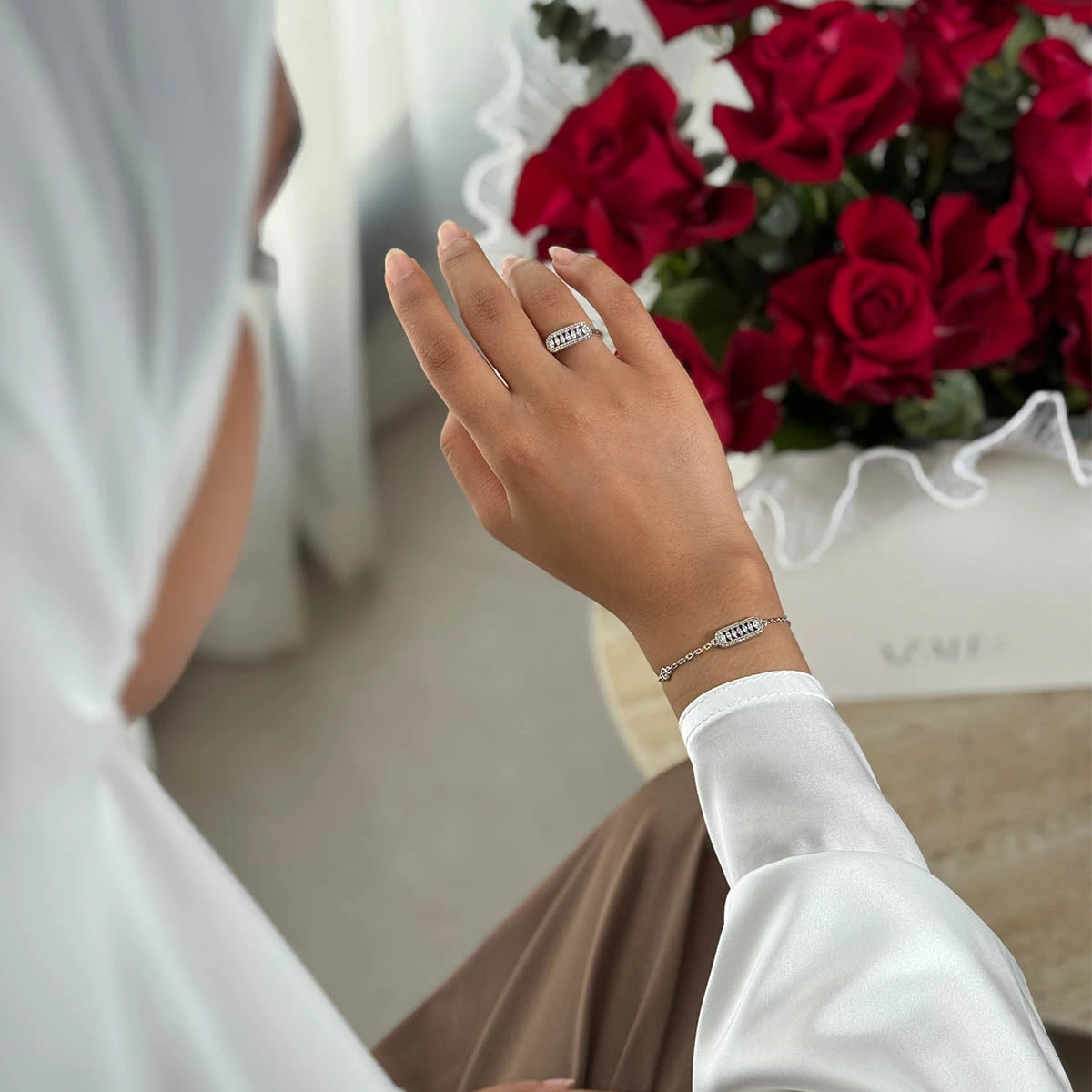 إلتقاء البساطة العصرية برفاهية الاستخدام اليومي، مع تصميم بيضاوي مطوّل وكريستالات على شكل أحجار الماركيز. تمنحكِ أناقة سلسة بلا عناء لإطلالات العمل وحتى السهرات المسائية.