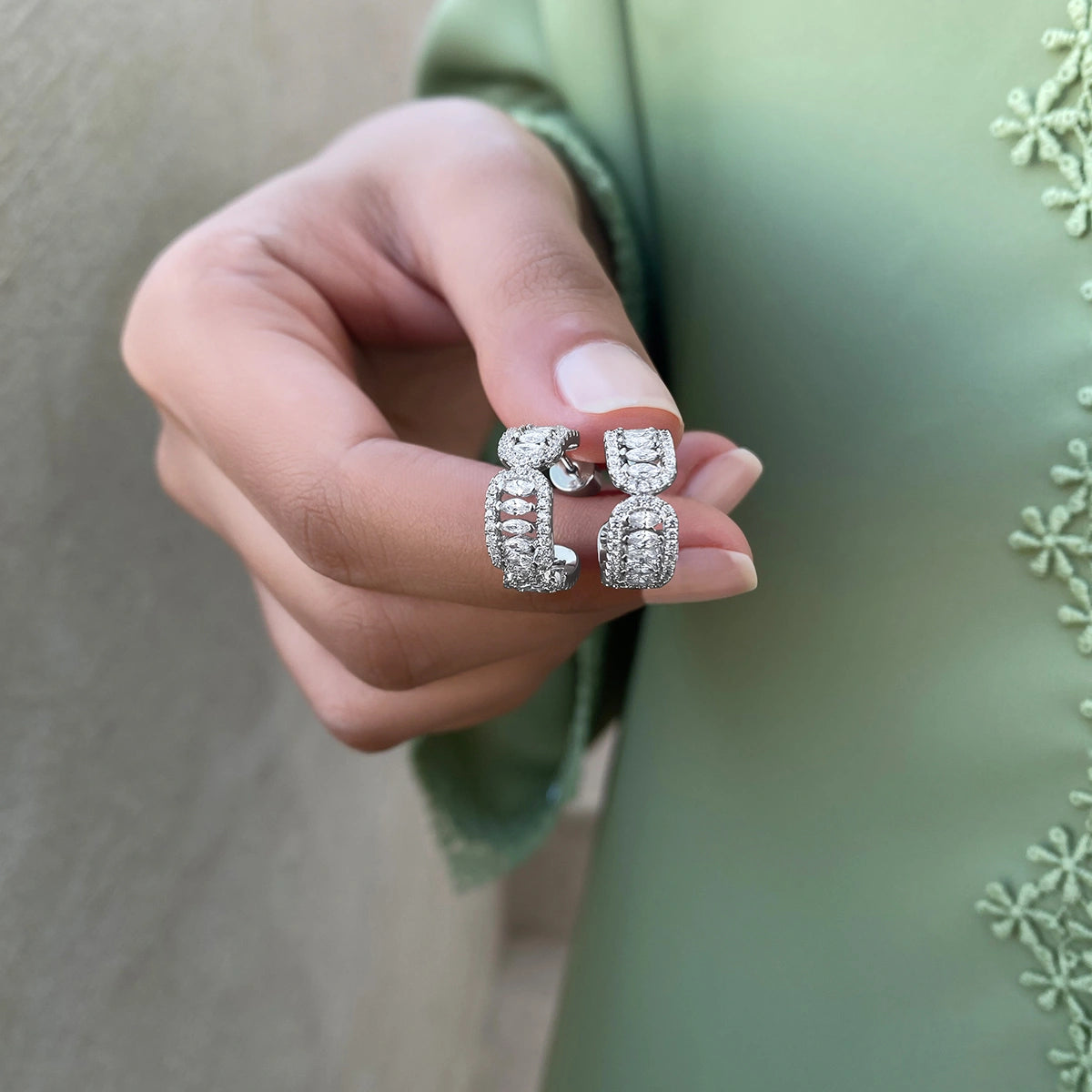 إلتقاء البساطة العصرية برفاهية الاستخدام اليومي، مع تصميم بيضاوي مطوّل وكريستالات على شكل أحجار الماركيز. تمنحكِ أناقة سلسة بلا عناء لإطلالات العمل وحتى السهرات المسائية.