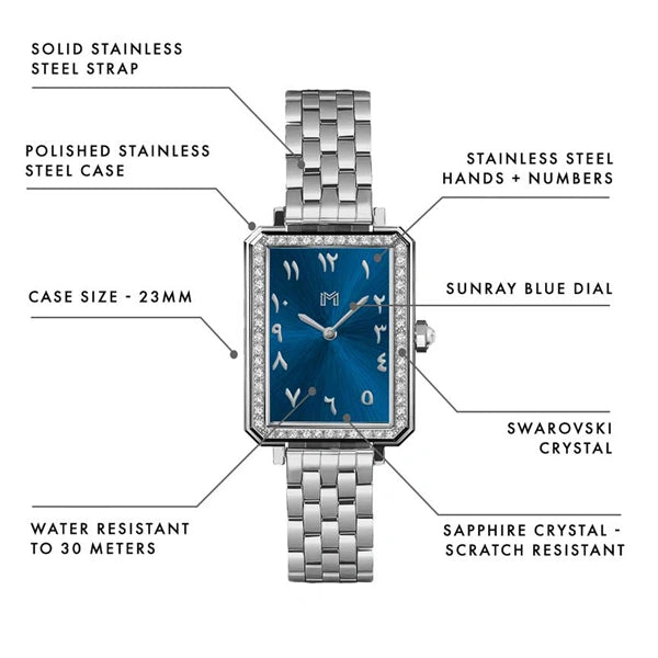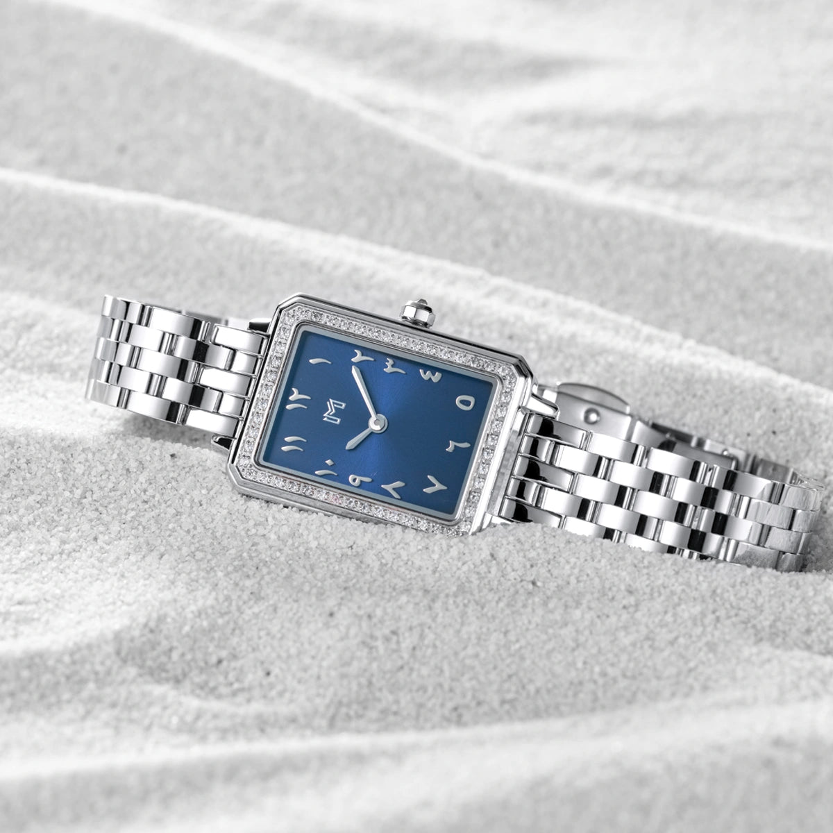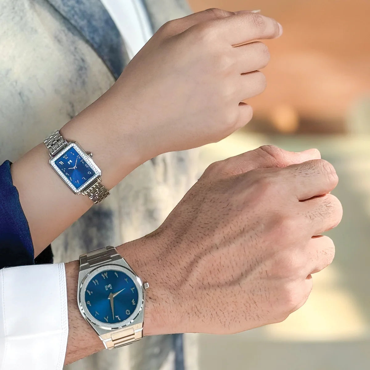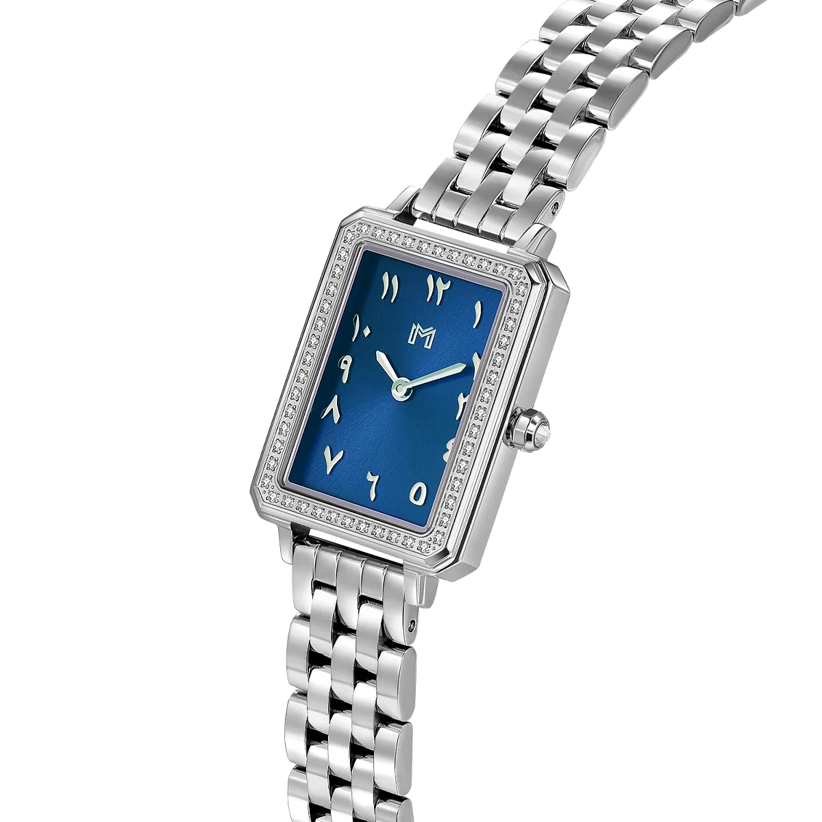 تجمع هذه الساعة بين التراث الثقافي الإماراتي والأناقة العصرية، بتصميم مستوحى من نوافذ البراجيل الأصيلة ومرصعة بالكريستال اللامع. تضيف الأرقام العربية على الميناء لمسة كلاسيكية فاخرة، لتكون قطعة ذات قيمة معنوية ولمسة من الفخامة في مجموعتك.
