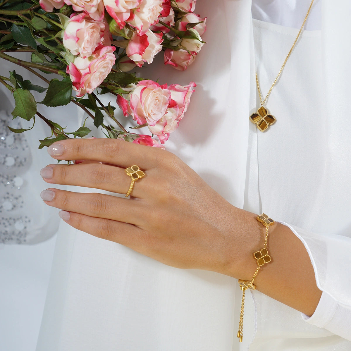 بوزن فائق الخفة وتصميم مريح، يمنحكِ طقم الجوري إحساسًا سلسًا على بشرتكِ. صُنع من مواد لطيفة ومضادة للحساسية، مما يجعله الإختيار المثالي لأناقة تدوم يوميًا.