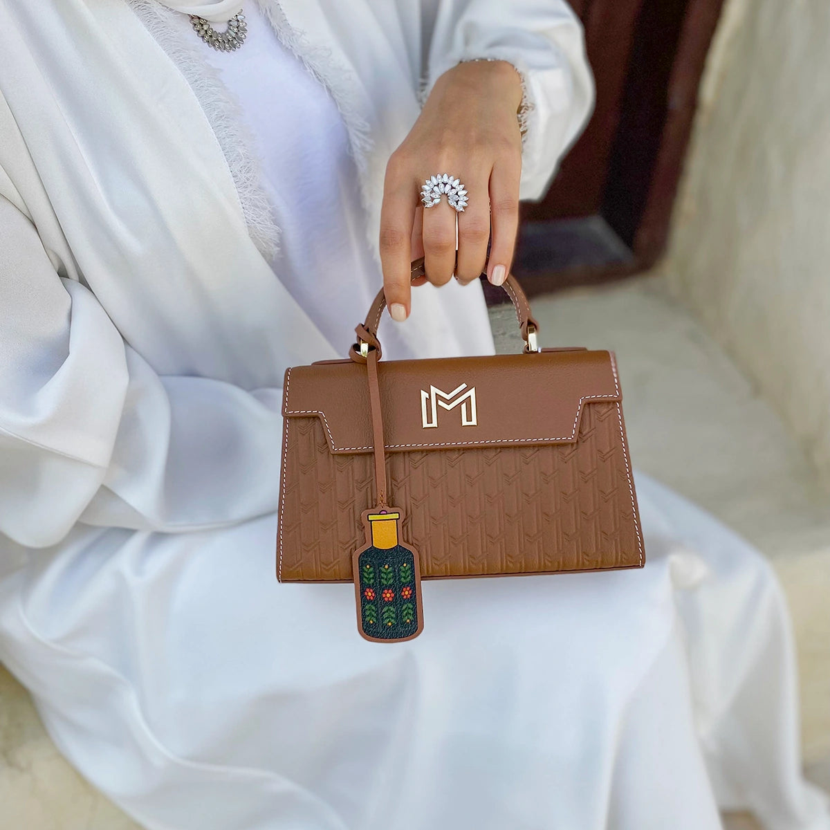 يُصنع كل تشارم بعناية فائقة في دولة الإمارات باستخدام جلد الجمل الفاخر المعروف بملمسه المميز ومتانته الطبيعية. يتميز بطباعة مزدوجة الوجهين لتضفي عليه طابعًا فريدًا وشخصية خاصة، ليكون قطعة أنيقة صُممت لتدوم.