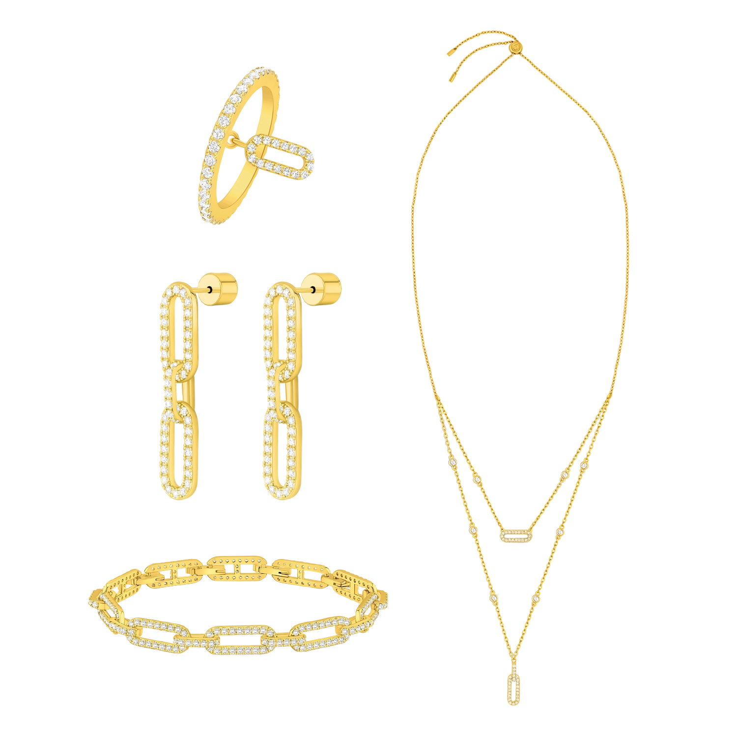 Our jewellery is made with high-quality materials plated with gold, silver, or rhodium, and adorned with premium crystals or stones.
