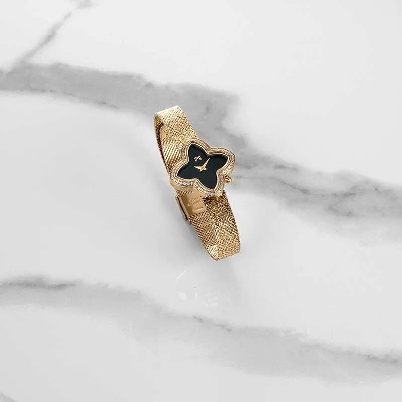 بتصميمها العملي والفخم، تضيف هذه الساعة لمسة جمالية لأي إطلالة. سواء نسّقتها مع أساور لمظهر عصري أو ارتديتها بمفردها كقطعة ملفتة، فإن سحر تصميمها المستوحى من الزهور ولمساتها المصقولة يضمنان لك حضورًا مميزًا بكل أناقة.