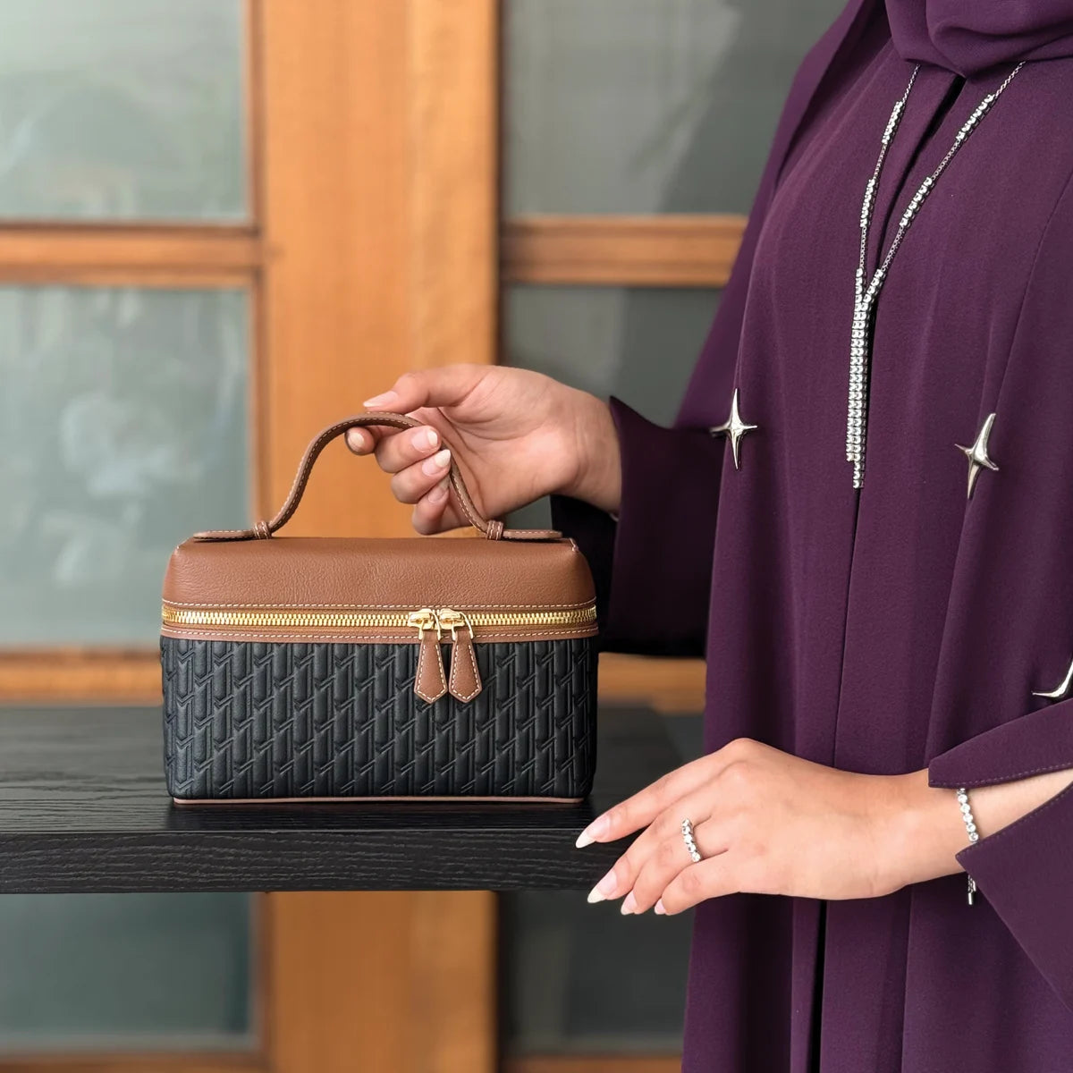 مستوحاة من التراث الإماراتي الغني ومدمجة بلمسات عصرية، تجمع كل شنطة بين التصميم البسيط والتفاصيل الثقافية الراقية، مما يجعلها قطعة فريدة وأنيقة. مصنوعة من أجود أنواع جلد الجمل المعروف بملمسه الفاخر ومقاومته الطبيعية للخدوش، صنعت كل شنطة يدويًا بدقة وإهتمام، لتدوم أناقتها لسنوات طويلة.
