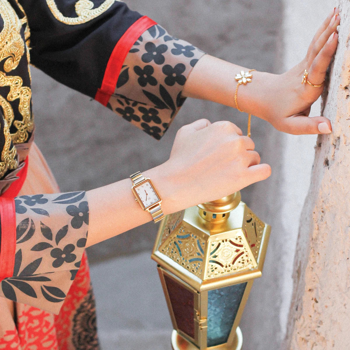 تتميز مجموعة كلاسيك بتصميم ينبض بالأصالة والرقي، مستوحىً من نوافذ البراجيل الشهيرة في التراث المعماري الأماراتي. تحاكي بساطة الماضي وأناقة الحاضر، حيث يتميز الميناء بالأرقام العربية ويثري إطلالتكِ اليومية، مع راحة مثالية صممت لترافقك طوال اليوم.