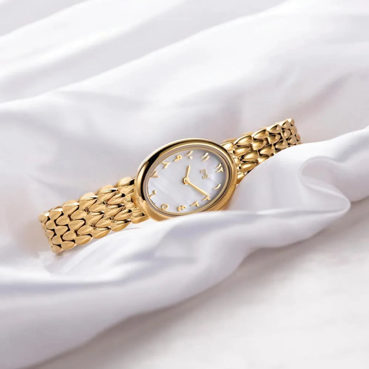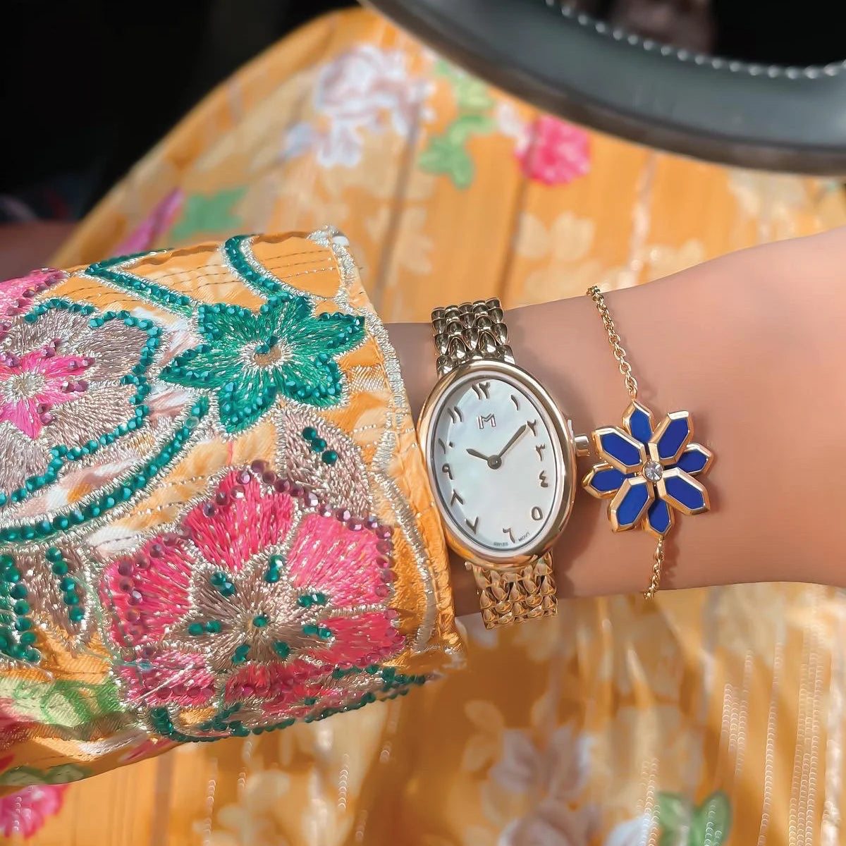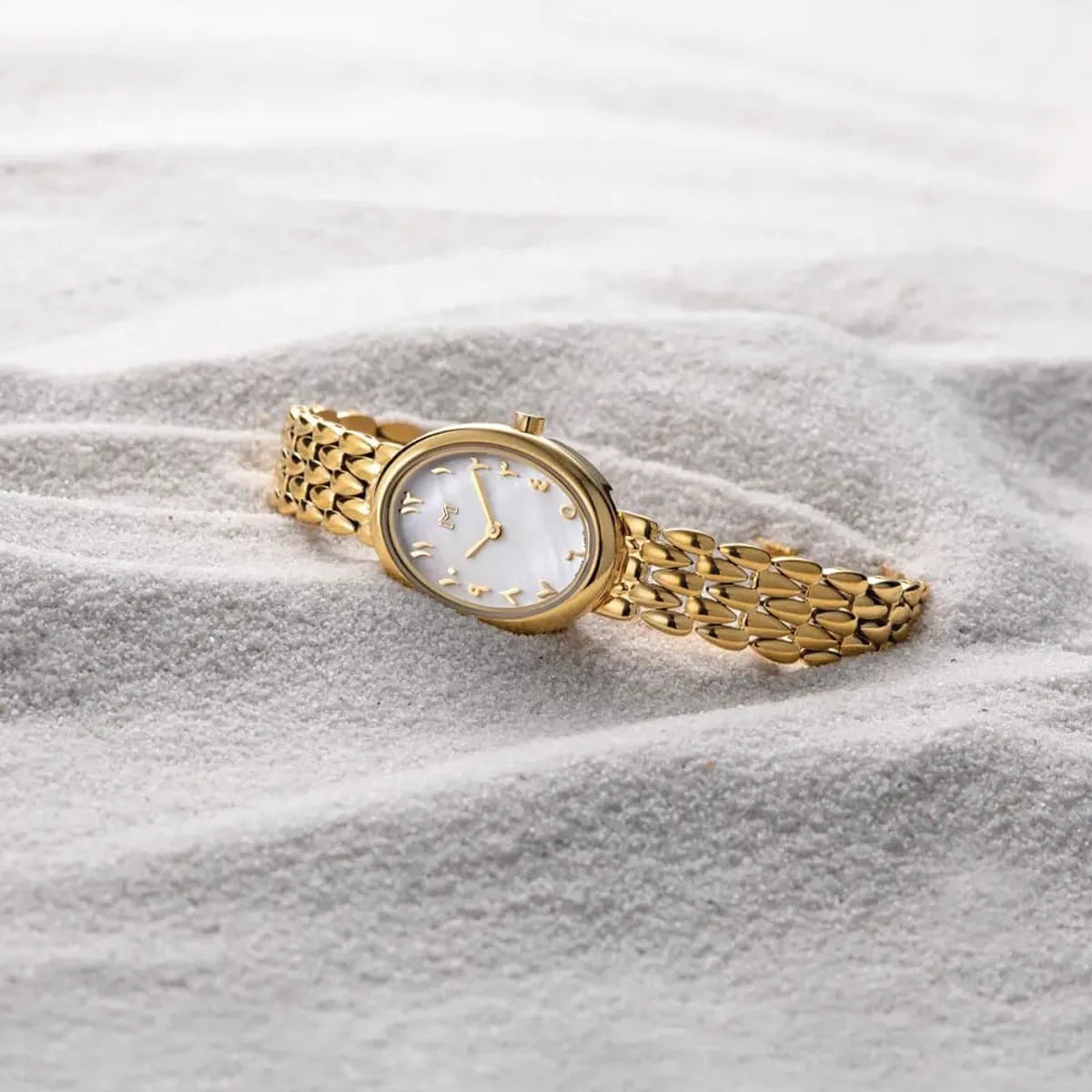 صُممت هذه الساعة لترافقك في إطلالاتك اليومية. بميناء بيضاوي أنيق مع سوار بحلقات مصقولة، لإنسياب سلس مع حركة معصمك ليمنحك خفةً مميزة ولمسة من الرقي البسيط الذي يرافقك طوال اليوم.