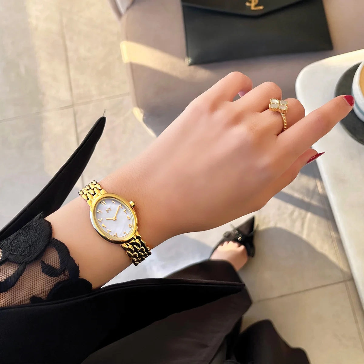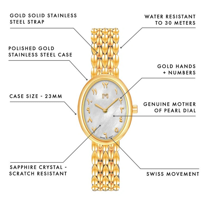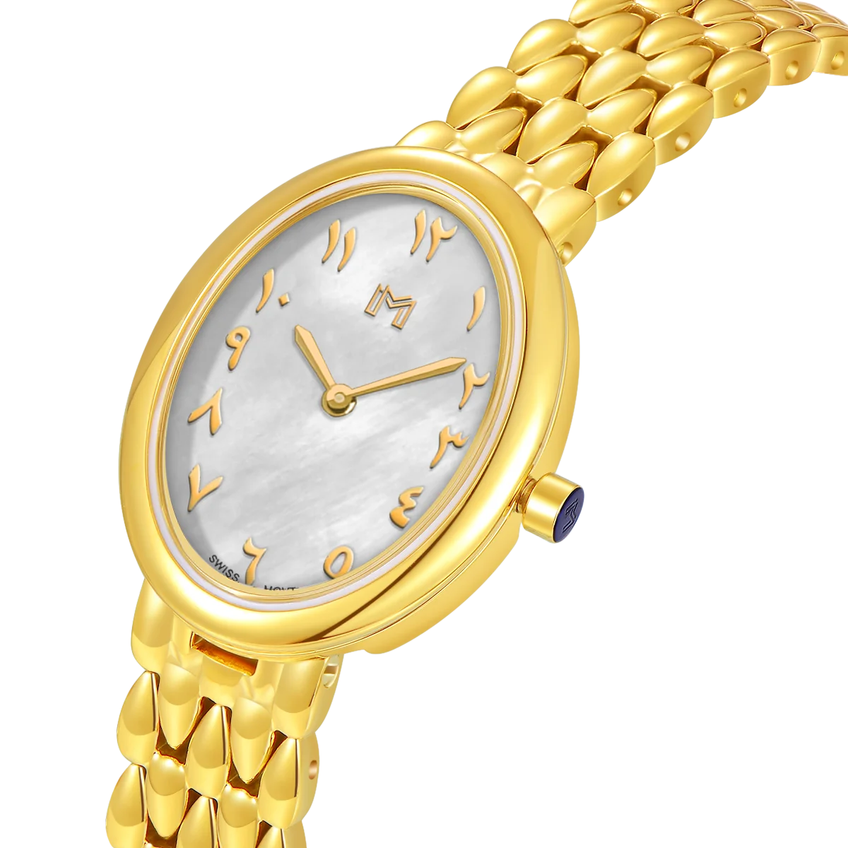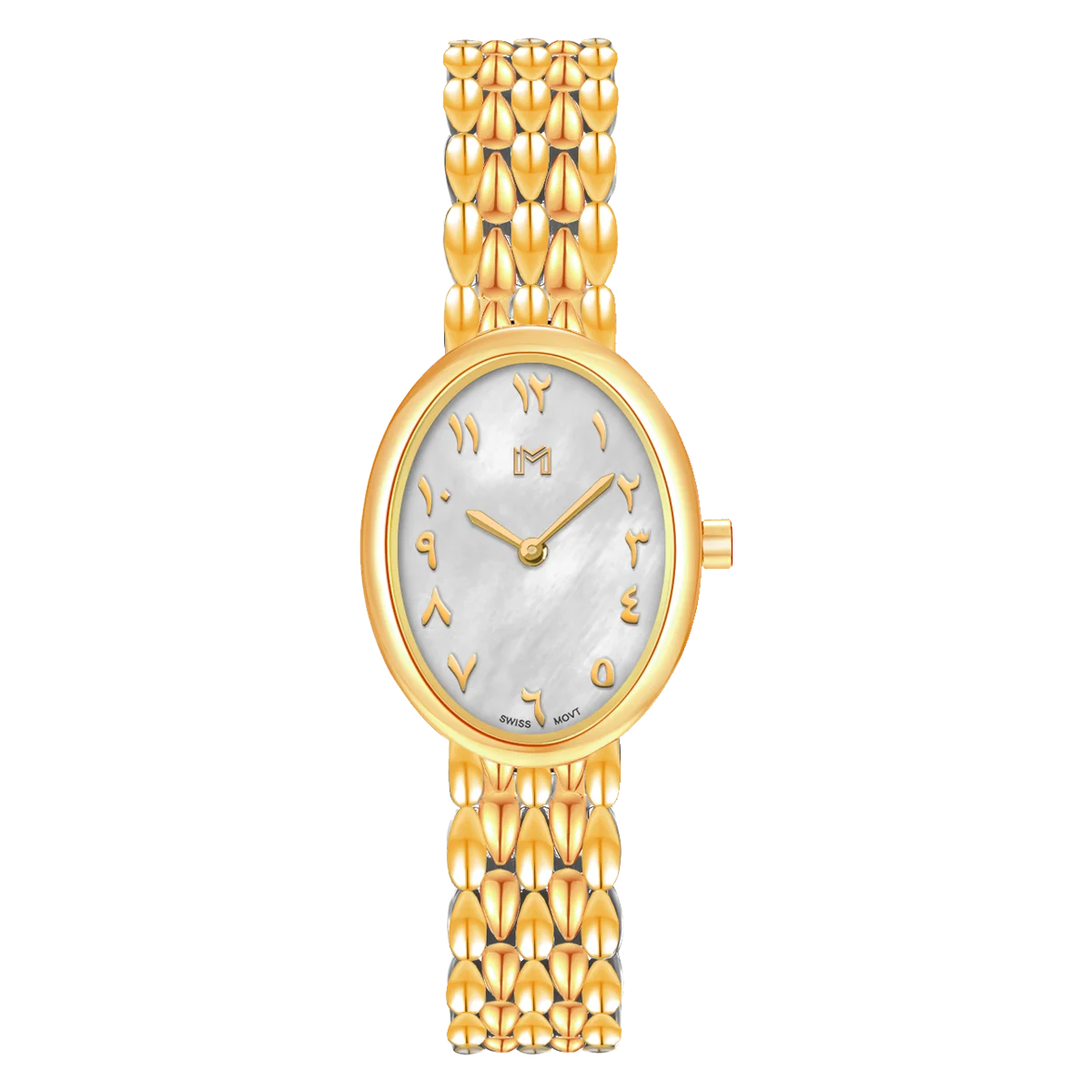 صُممت هذه الساعة لترافقك في إطلالاتك اليومية. بميناء بيضاوي أنيق مع سوار بحلقات مصقولة، لإنسياب سلس مع حركة معصمك ليمنحك خفةً مميزة ولمسة من الرقي البسيط الذي يرافقك طوال اليوم.