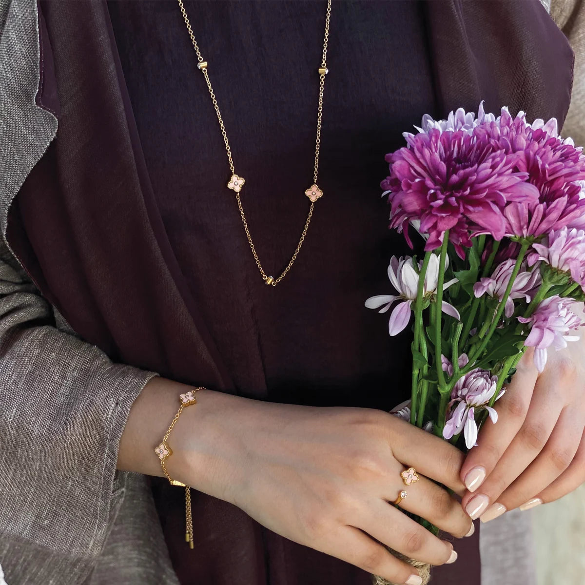 Our jewellery is made with high-quality materials plated with gold, silver, or rhodium, and adorned with premium crystals or stones.