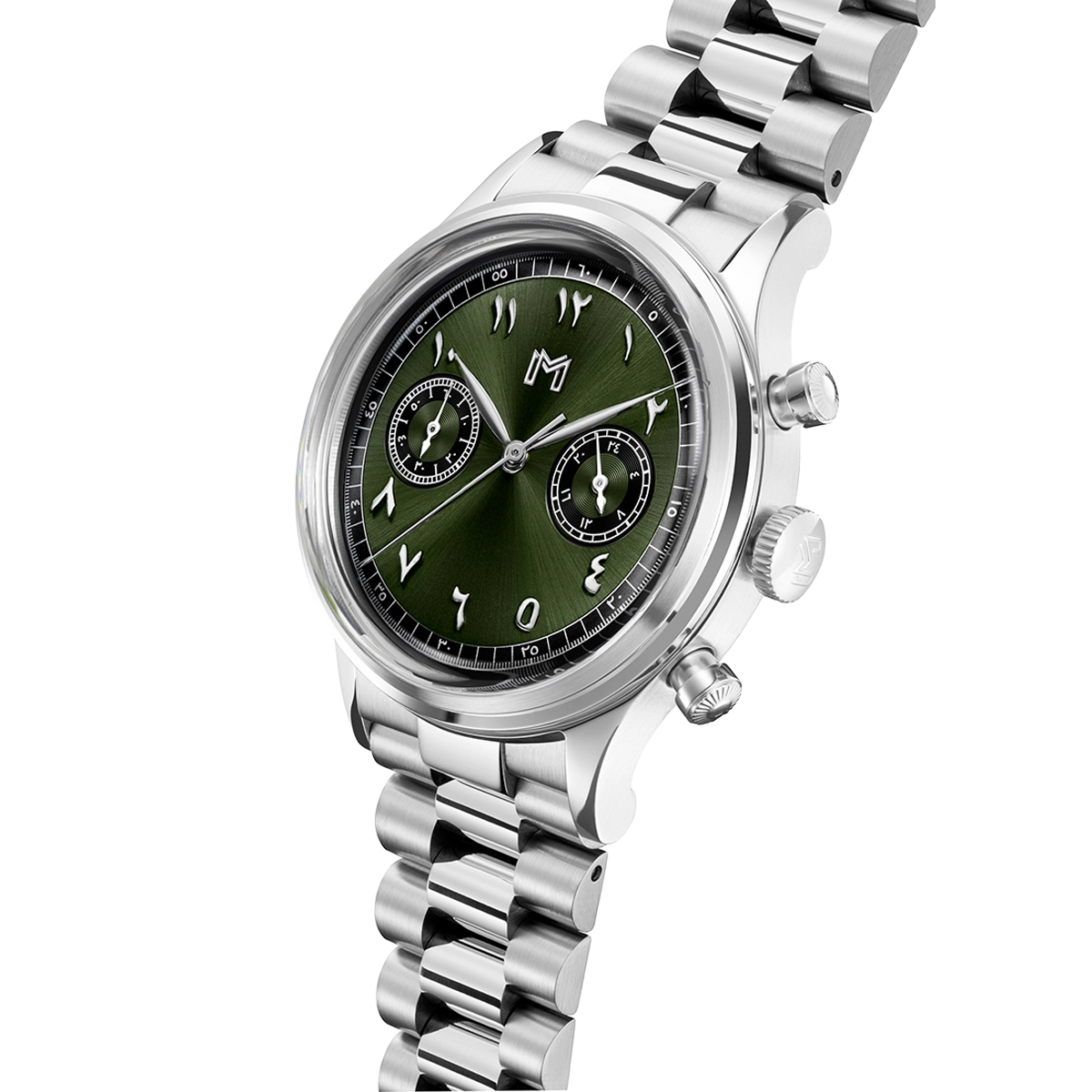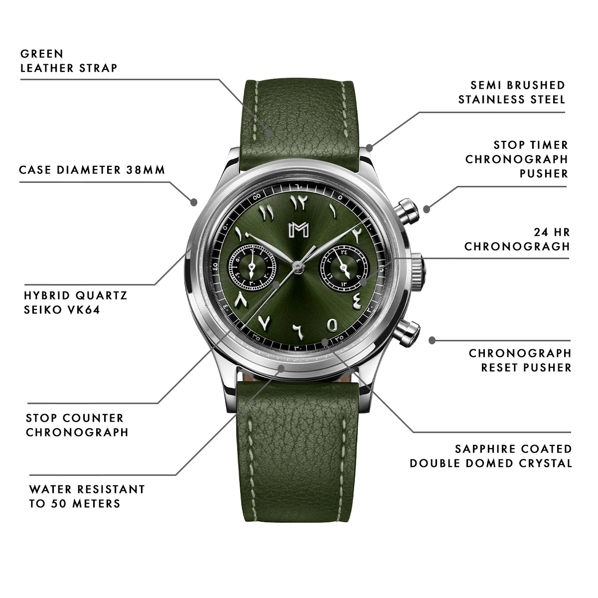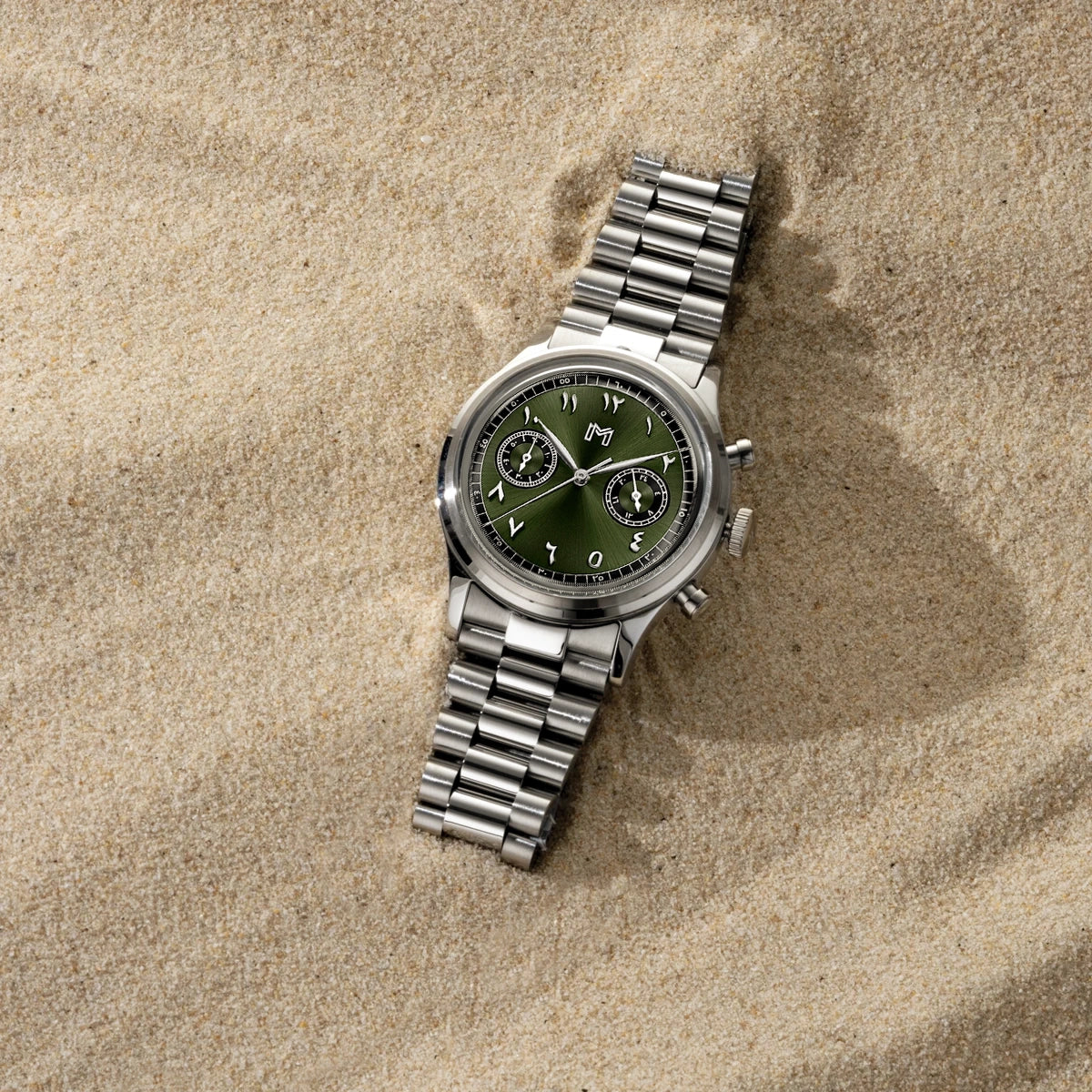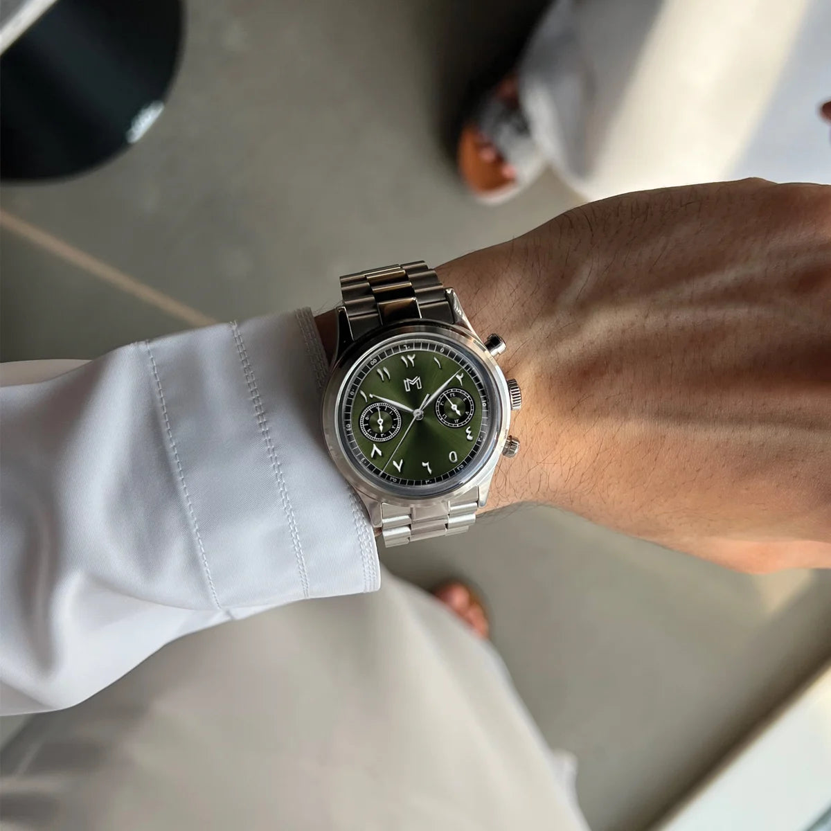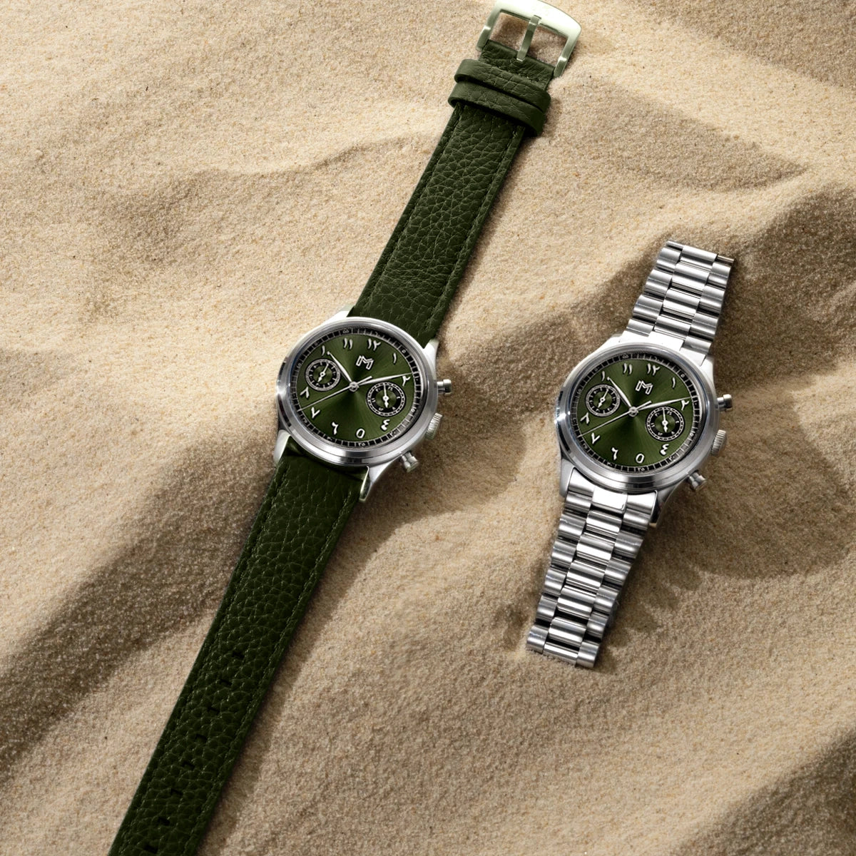 بتصميم مستوحى من الطابع الكلاسيكي الأنيق، تجمع هذه الساعة بين حركة ميكا-كوارتز عالية الدقة، وخاصية عملية لتبديل سوار الساعة بكل بسهولة بين الجلد والفولاذ. صممت خصيصًا لليوم الوطني السعودي.