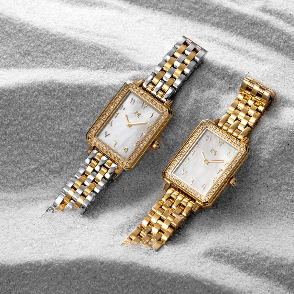 تتميز مجموعة دايموند كلاسيك بميناء مرصع بالكريستال وأرقام عربية، مع تصميم مستوحى من البراجيل الإماراتية الأصيلة ممزوج بلمسات عصرية متألقة، لتمنحك أناقة خالدة وراحة مثالية طوال اليوم.
