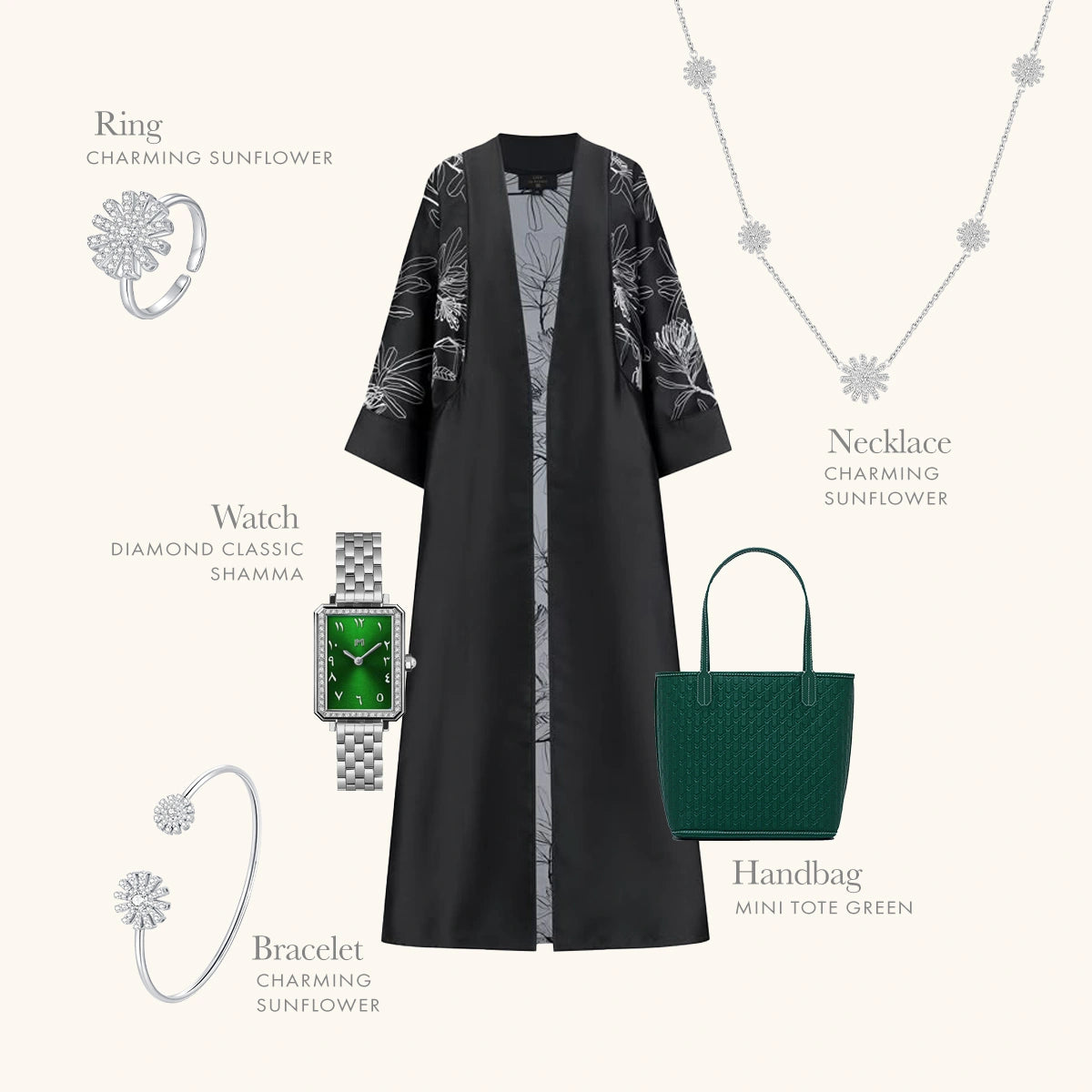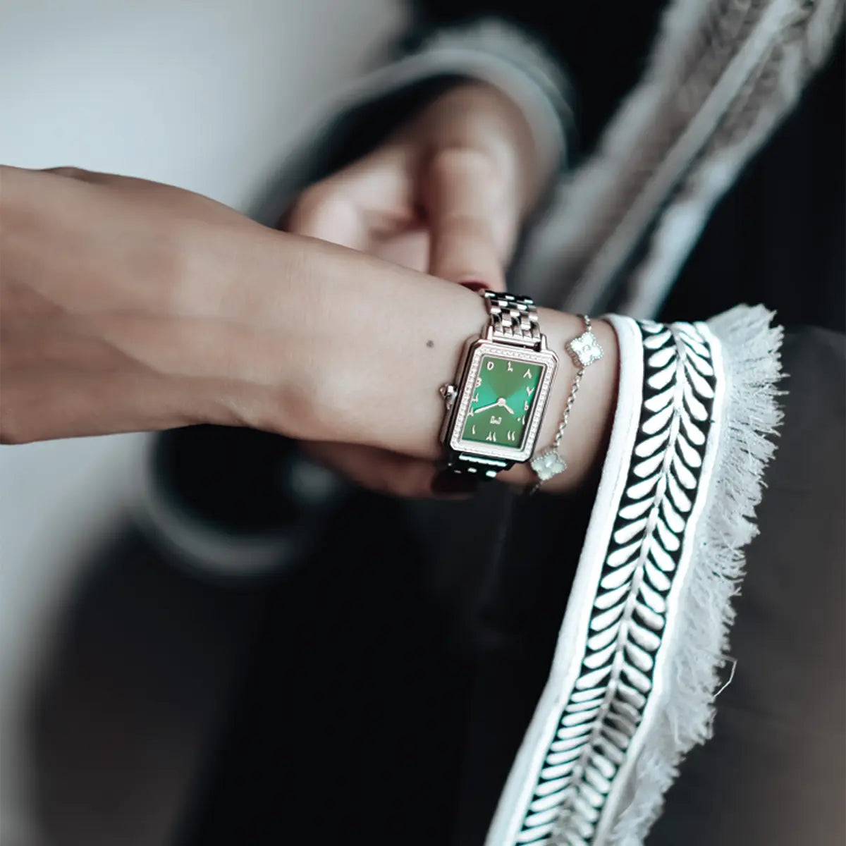 تتميز مجموعة دايموند كلاسيك بميناء مرصع بالكريستال وأرقام عربية، مع تصميم مستوحى من البراجيل الإماراتية الأصيلة ممزوج بلمسات عصرية متألقة، لتمنحك أناقة خالدة وراحة مثالية طوال اليوم.