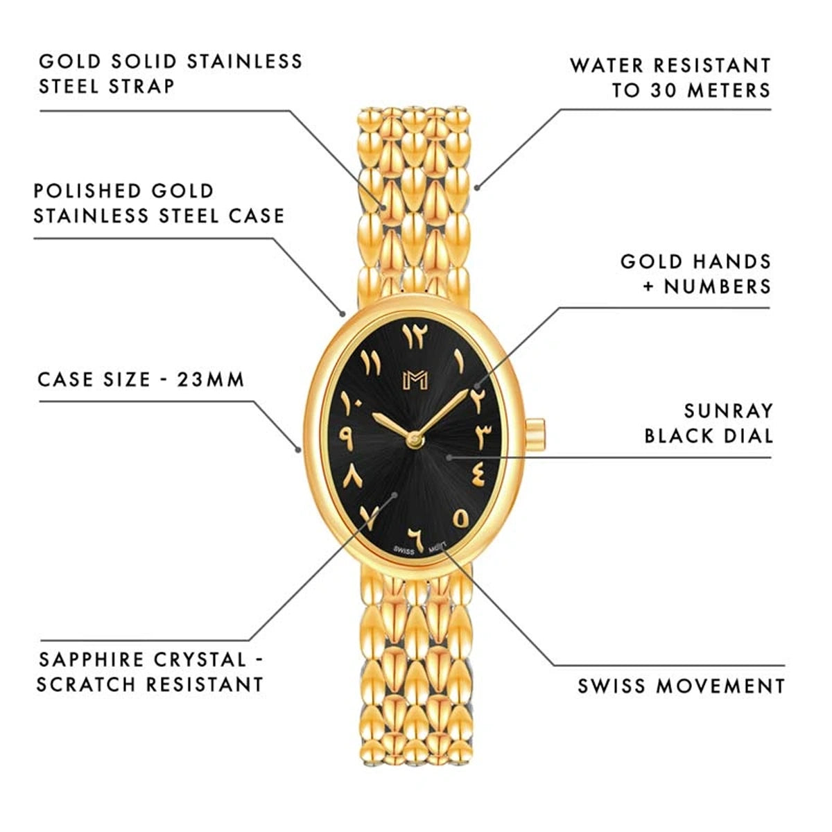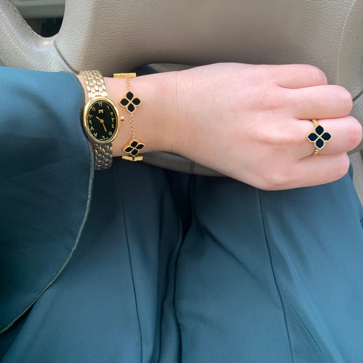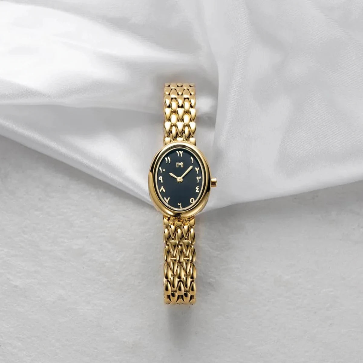 صُممت هذه الساعة لترافقك في إطلالاتك اليومية. بميناء بيضاوي أنيق مع سوار بحلقات مصقولة، لإنسياب سلس مع حركة معصمك ليمنحك خفةً مميزة ولمسة من الرقي البسيط الذي يرافقك طوال اليوم.