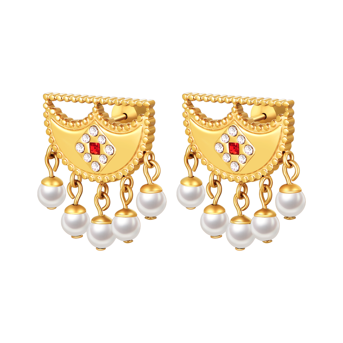 شناف /أقراط اللؤلؤ باللون الذهبي