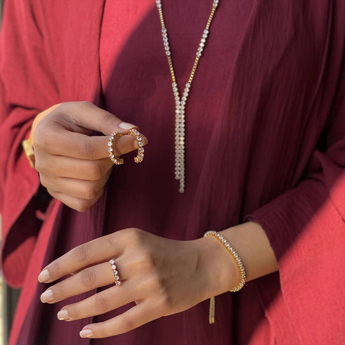 Our jewellery is made with high-quality materials plated with gold, silver, or rhodium, and adorned with premium crystals or stones.