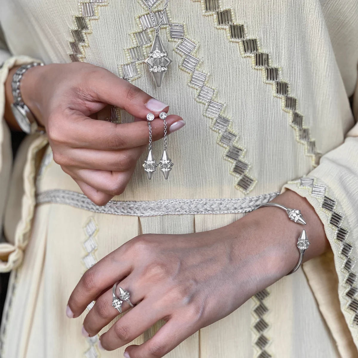 Our jewellery is made with high-quality materials plated with gold, silver, or rhodium, and adorned with premium crystals or stones.